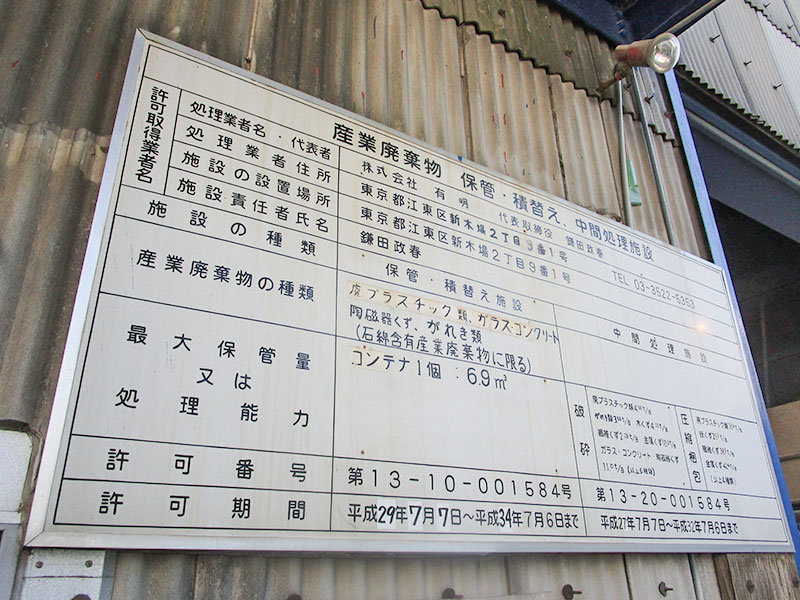 株式会社有明は、創業以来、産業廃棄物処理のエキスパートを目指して、現在関東地区13都県市の産業廃棄物処理業の許可を得て、建設系産業廃棄物業者として多くのお客様のお役に立つよう努力を続けております。