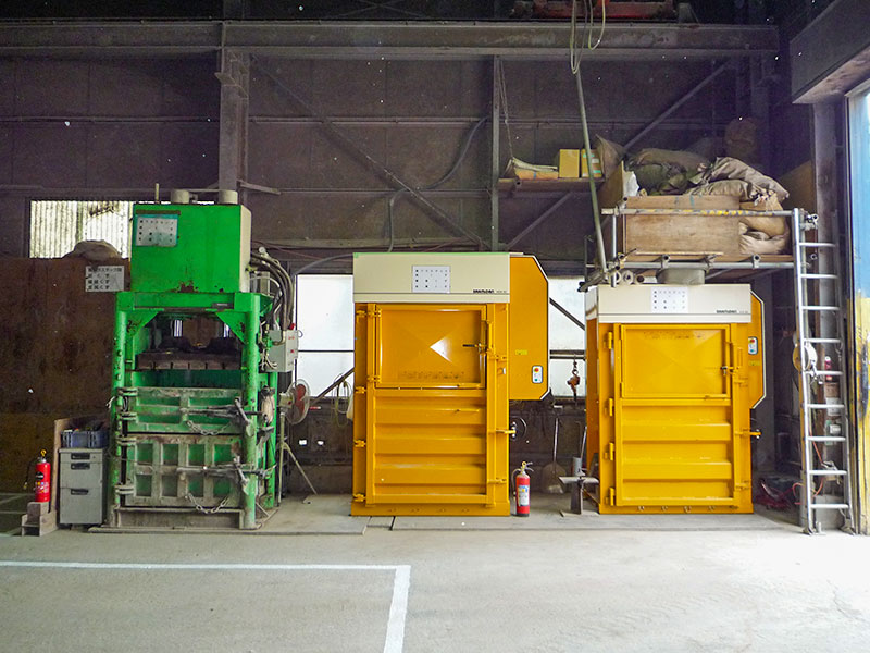 圧縮機左からビニール、紙、廃プラスチックを圧縮します。